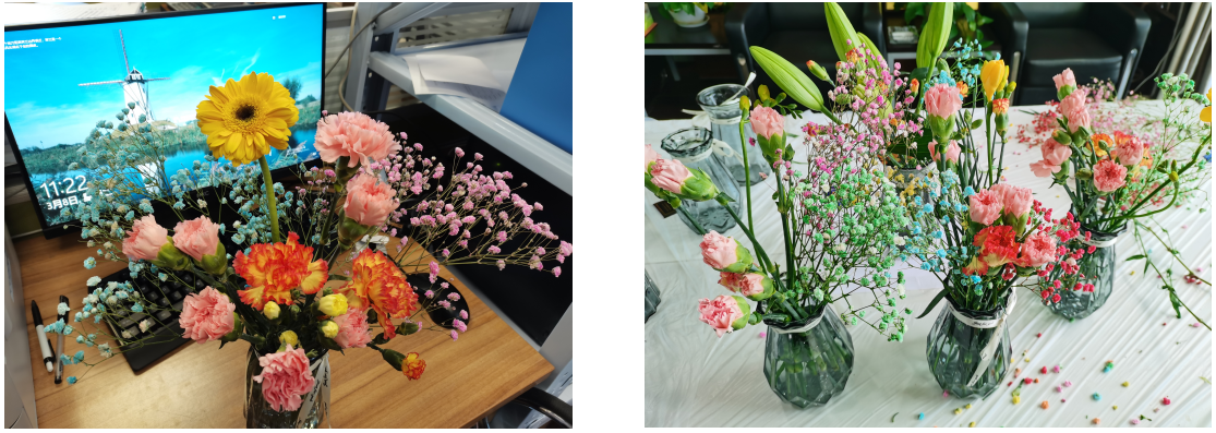 因為時間和場地的限制,女職工們與一朵朵花短暫接觸,意猶未盡,紛紛拿起手機,為這一刻留下紀念。